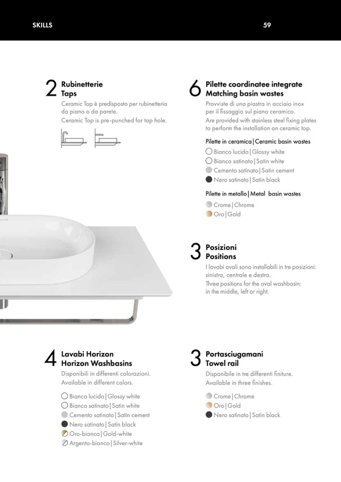 I lavabi ovali sono installabili in tre posizioni: