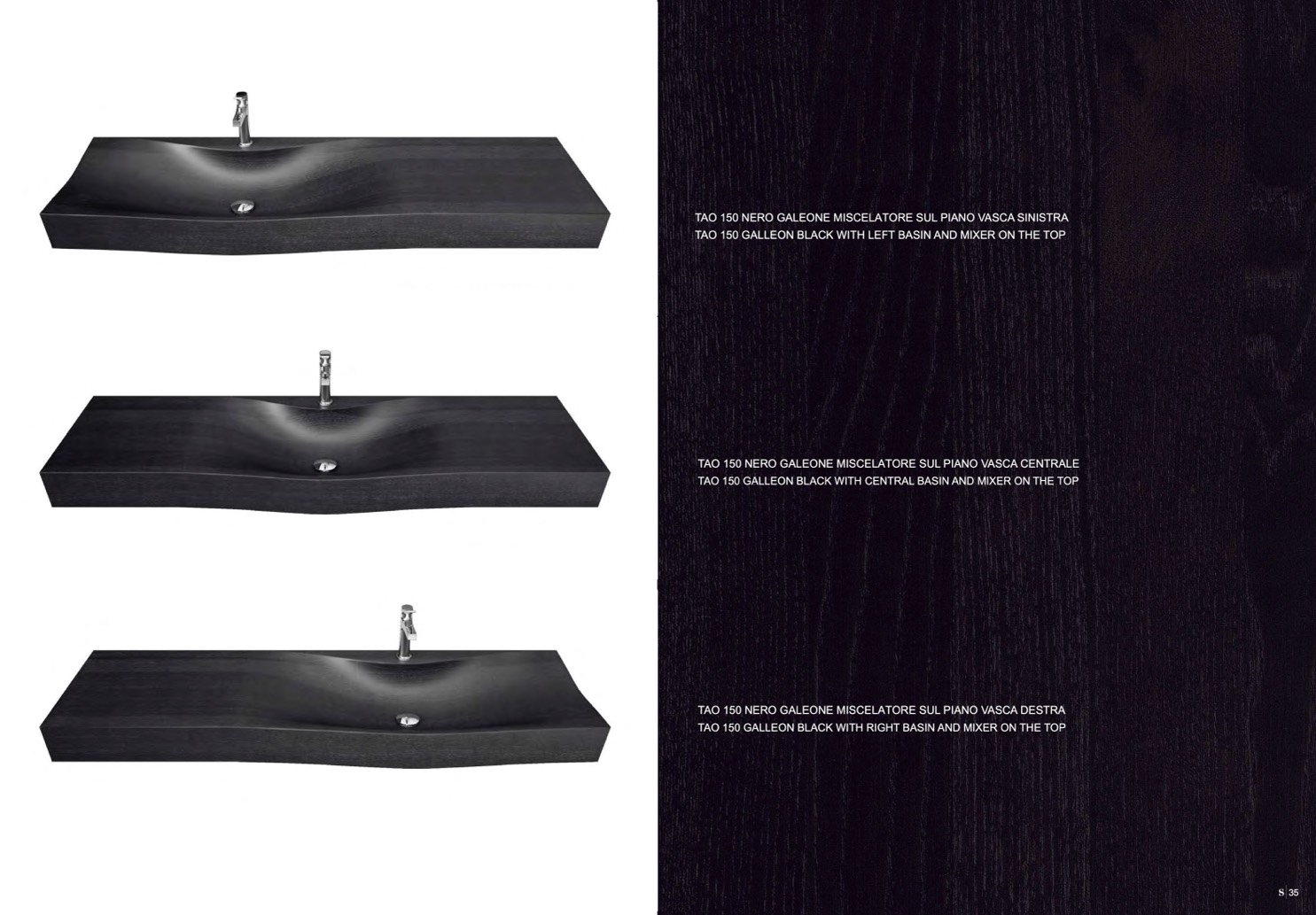 TAO 150 GALLEON BLACK WITH RIGHT BASIN AND MIXER ON THE TOP
