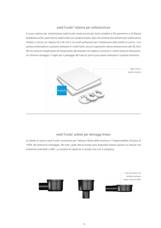 rifilabili a misura con altezza 30 e 60 mm e tre anelli preformati per l’installazione delle pilette di scarico. Con
