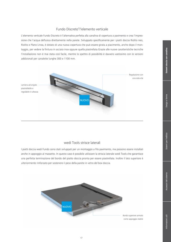 sione che l’acqua defluisca direttamente nella parete. Sviluppato specificamente per i piatti doccia Riolito neo,