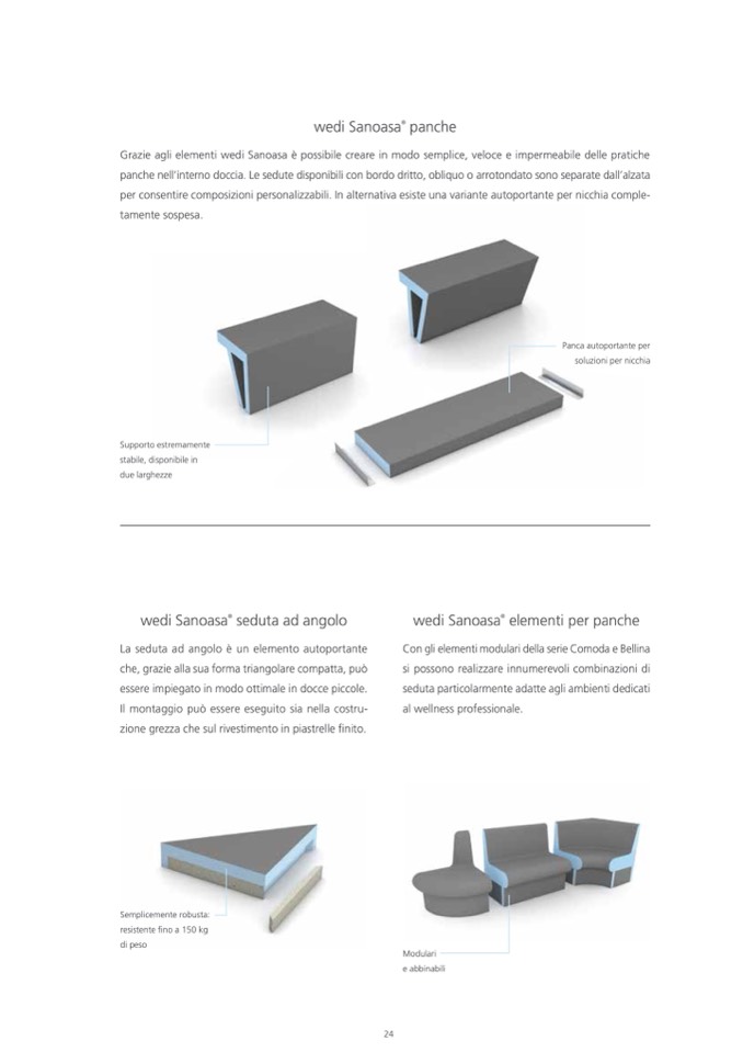 Grazie agli elementi wedi Sanoasa è possibile creare in modo semplice, veloce e impermeabile delle pratiche