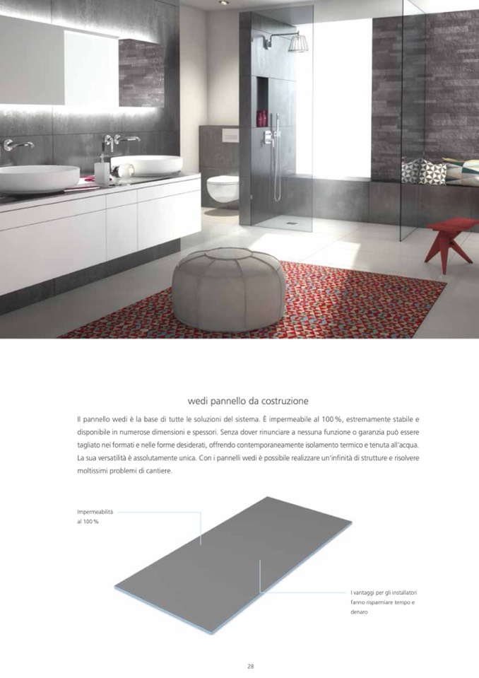Il pannello wedi è la base di tutte le soluzioni del sistema. È impermeabile al 100%, estremamente stabile e