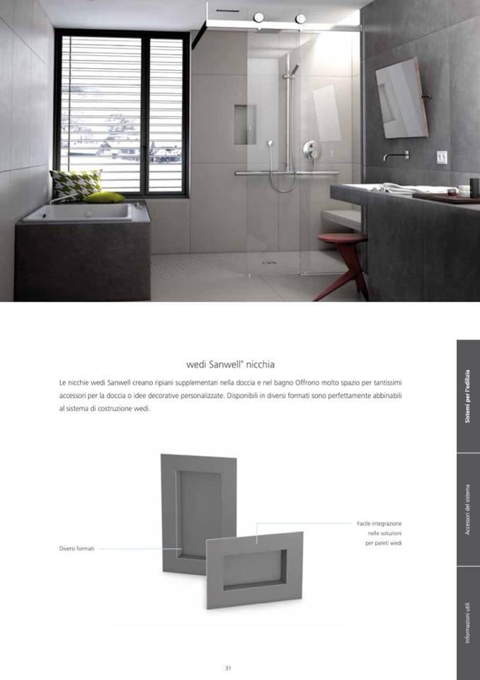 Le nicchie wedi Sanwell creano ripiani supplementari nella doccia e nel bagno Offrono molto spazio per tantissimi