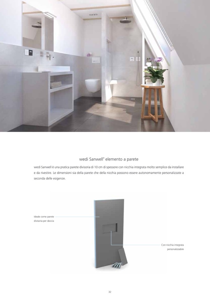 wedi Sanwell è una pratica parete divisoria di 10 cm di spessore con nicchia integrata molto semplice da installare