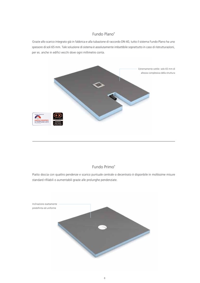 Grazie allo scarico integrato già in fabbrica e alla tubazione di raccordo DN 40, tutto il sistema Fundo Plano ha uno