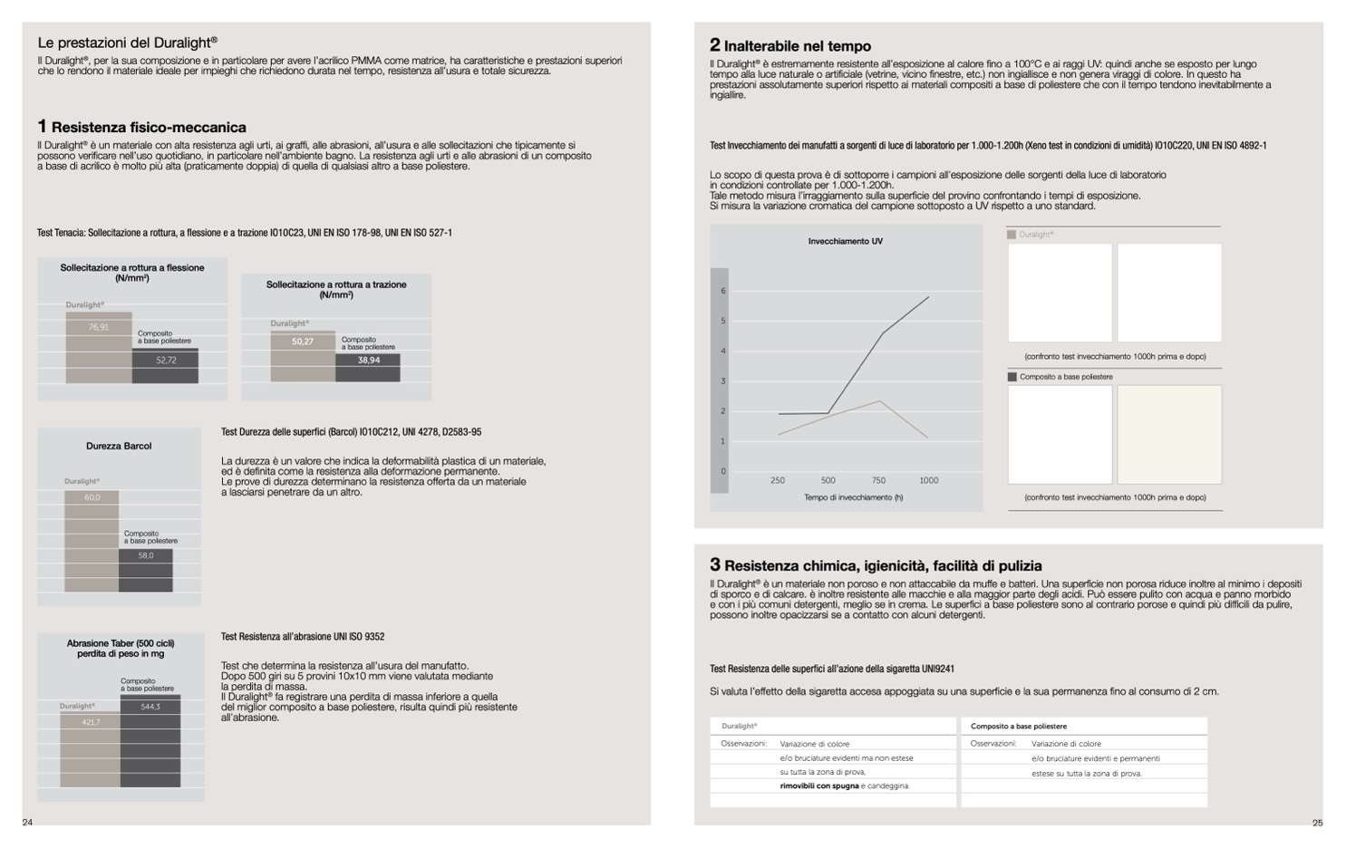 prestazioni assolutamente superiori rispetto ai materiali compositi a base di poliestere che con il tempo tendono inevitabilmente a