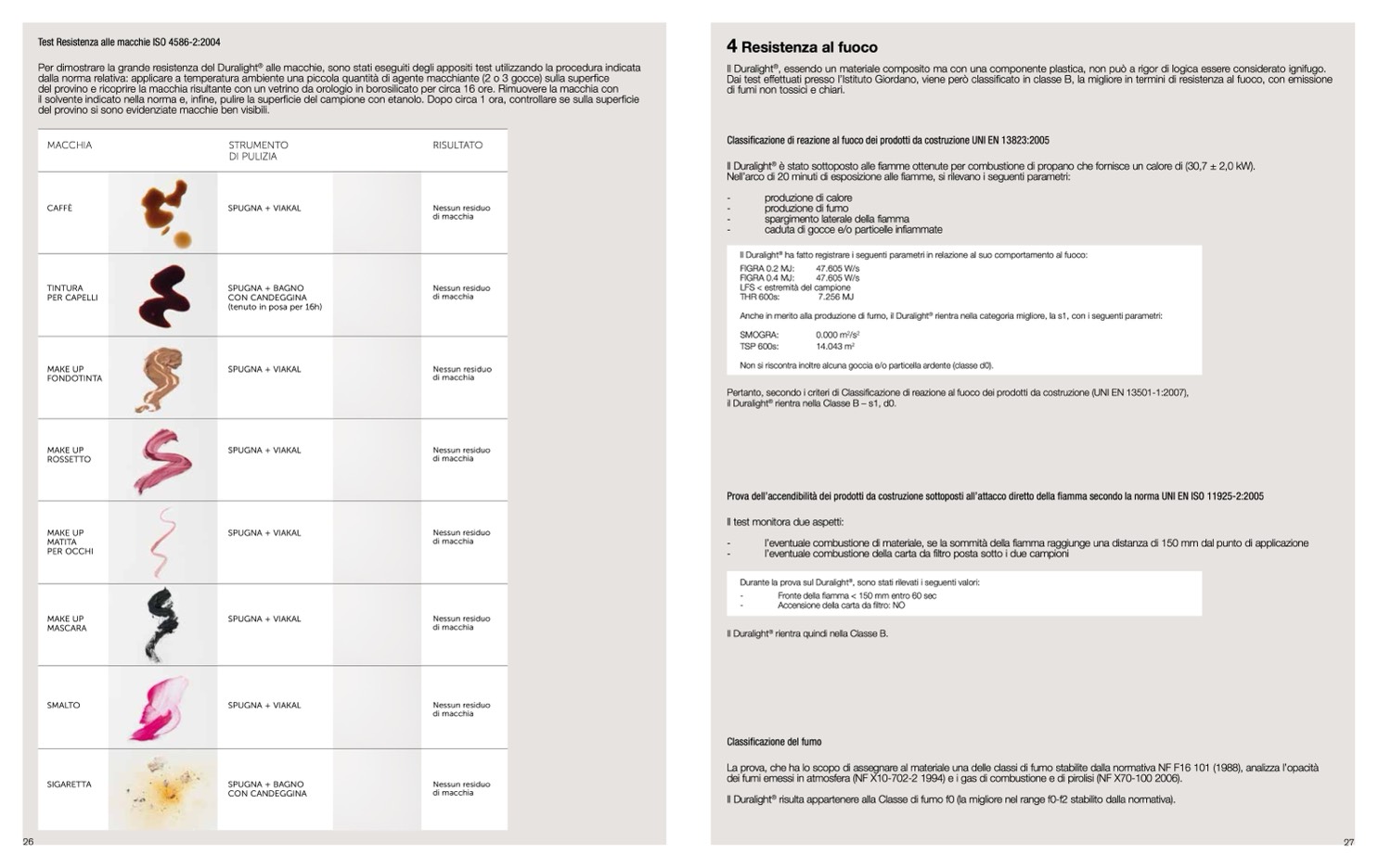 Dai test effettuati presso l’Istituto Giordano, viene però classificato in classe B, la migliore in termini di resistenza al fuoco, con emissione
