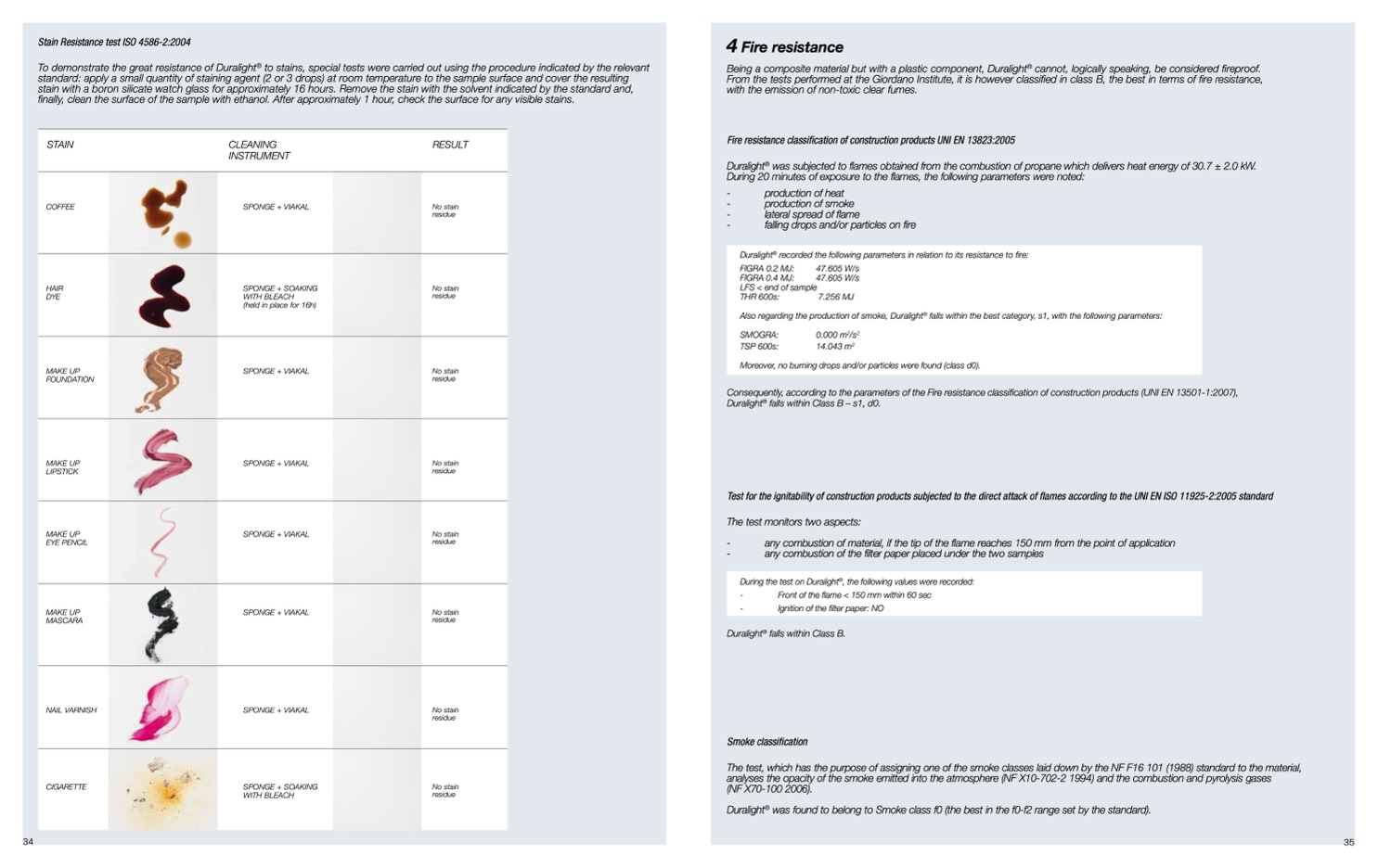 to stains, special tests were carried out using the procedure indicated by the relevant