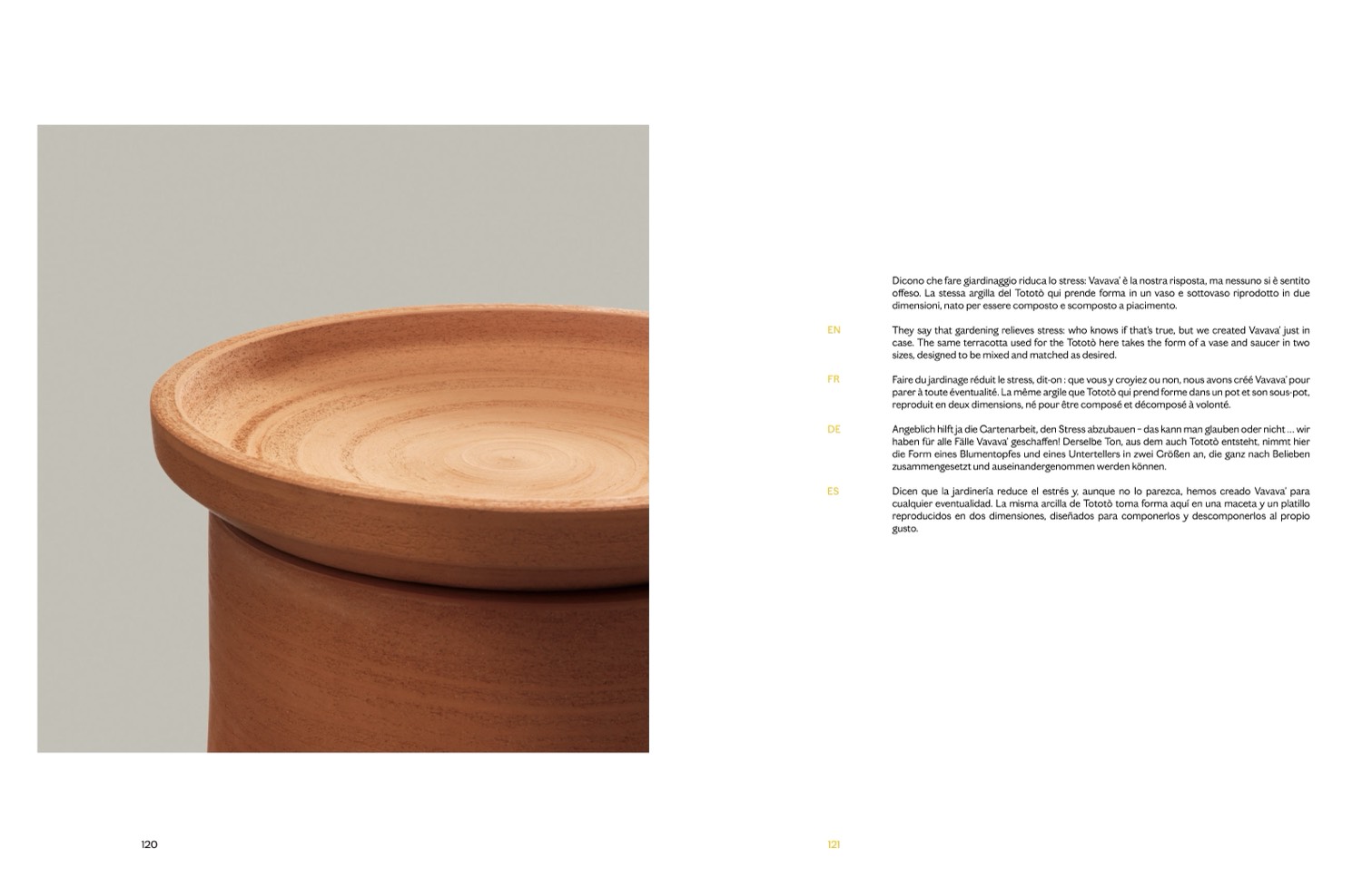 case. The same terracotta used for the Tototò here takes the form of a vase and saucer in two