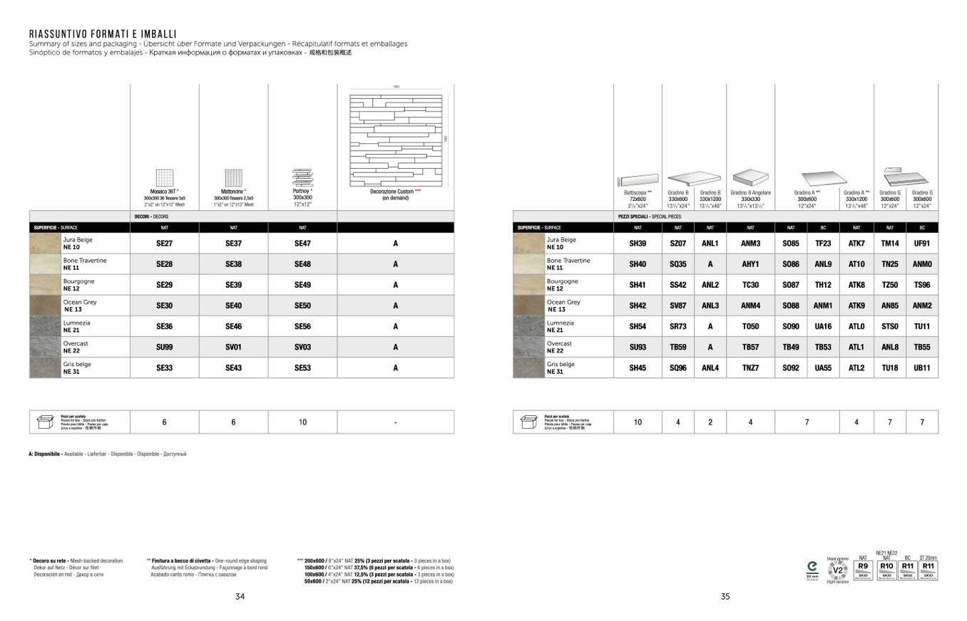 Sinóptico de formatos y embalajes - Краткая информация о форматах и упаковках - 规格和包装概述