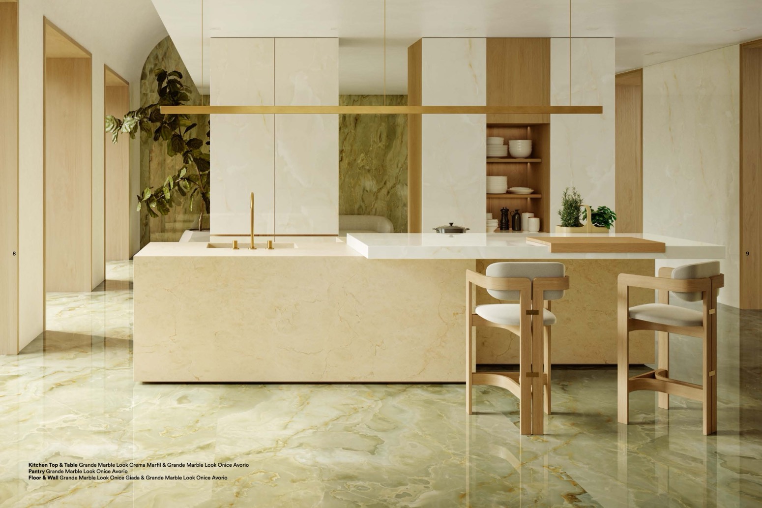 Kitchen Top & Table Grande Marble Look Crema Marfil & Grande Marble Look Onice Avorio