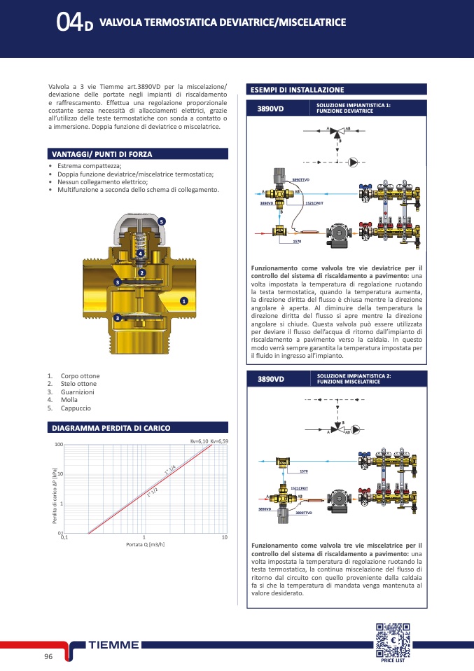 Valvola a 3 vie Tiemme art.3890VD per la miscelazione/