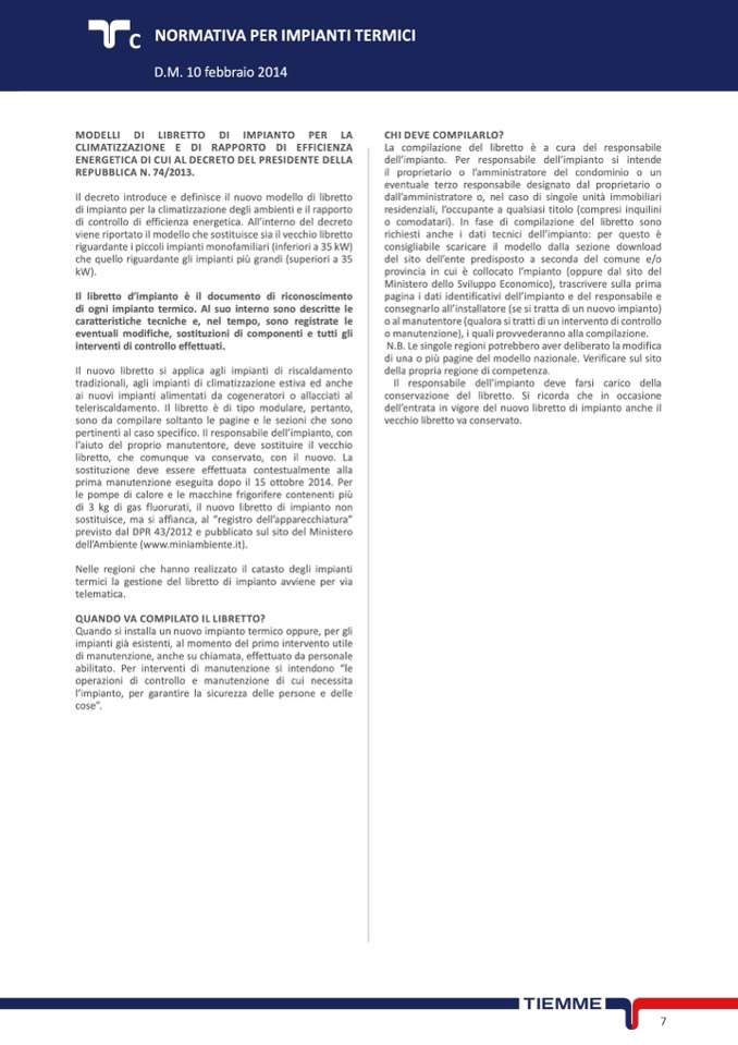 Il nuovo libretto si applica agli impianti di riscaldamento