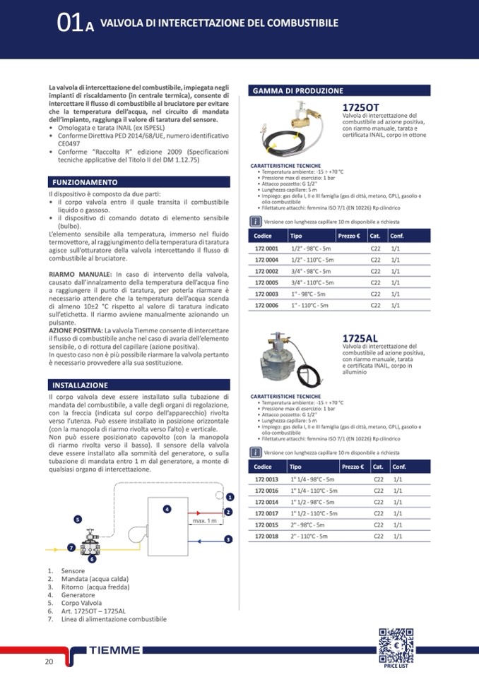 tubazione di mandata entro 1 m dal generatore, a monte di