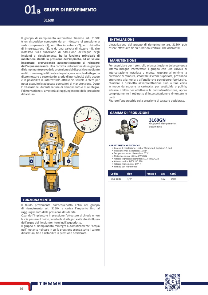 • Campo di regolazione: 1-6 bar (Taratura di fabbrica 1,5 bar)