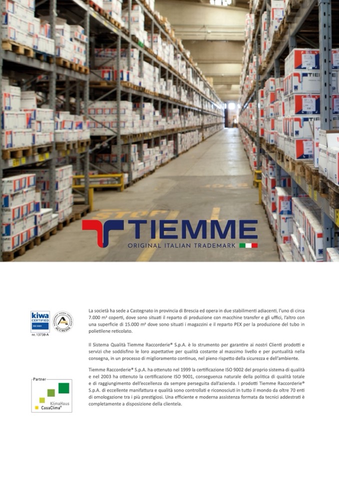 e di raggiungimento dell’eccellenza da sempre perseguita dall’azienda. I prodotti Tiemme Raccorderie®