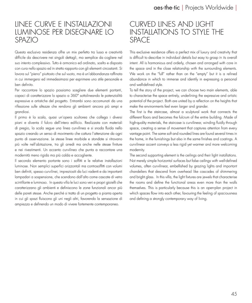 and bright glass. In this villa, the light fixtures are jewels that characterise