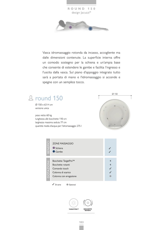 Vasca idromassaggio rotonda da incasso, accogliente ma