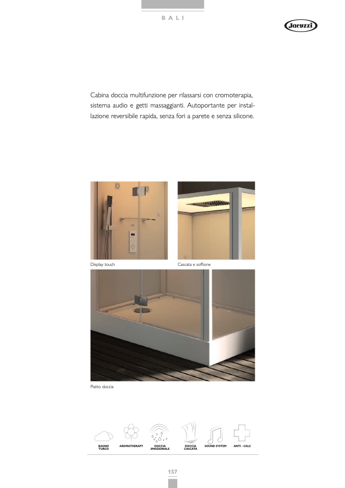 sistema audio e getti massaggianti. Autoportante per instal-