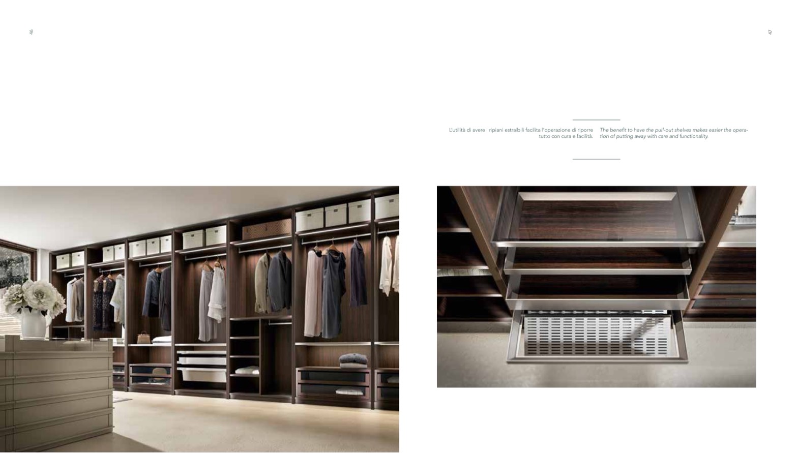 L’utilità di avere i ripiani estraibili facilita l’operazione di riporre The benefit to have the pull-out shelves makes easier the opera-