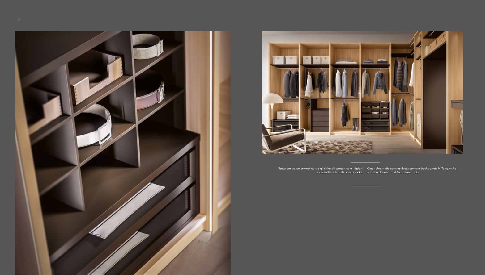 Netto contrasto cromatico tra gli shienali tanganica e i ripiani Clear chromatic contrast between the backboards in Tanganyka