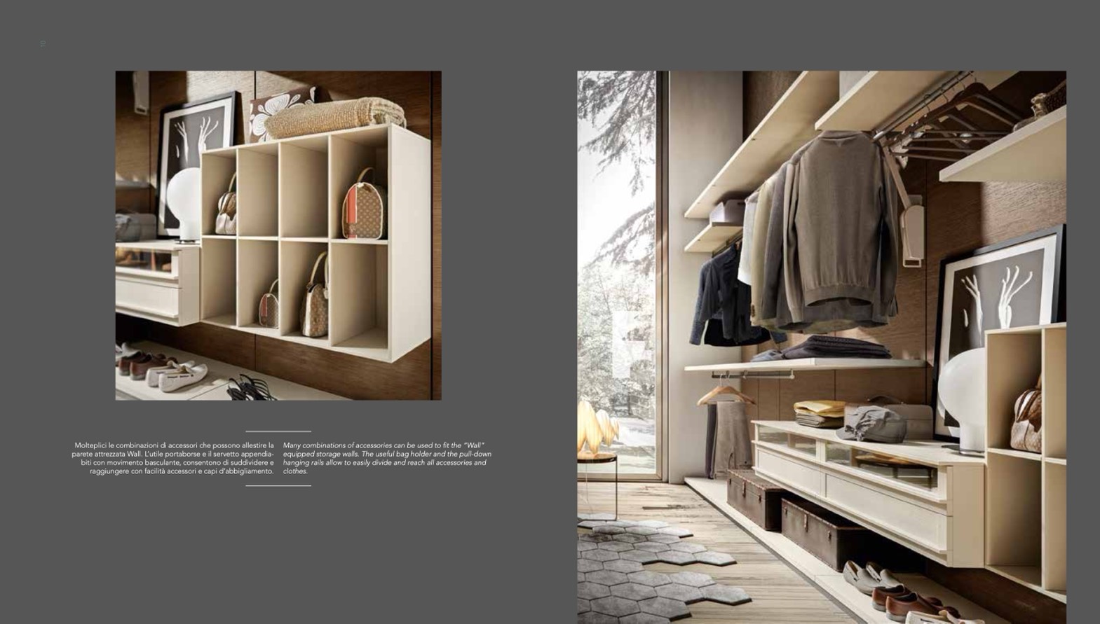 Many combinations of accessories can be used to fit the “Wall”