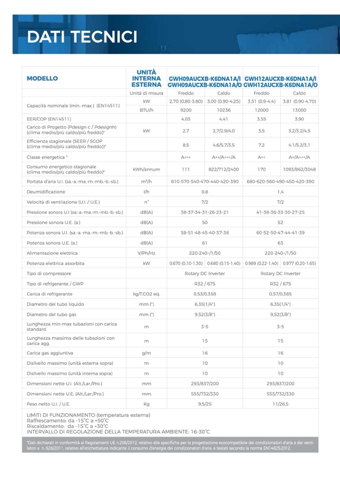 *Dati dichiarati in conformità ai Regolamenti UE n.206/2012, relativo alle specifiche per la progettazione ecocompatibile dei condizionatori d'aria e dei venti-
