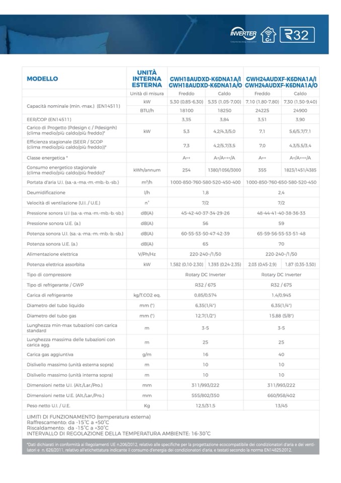 *Dati dichiarati in conformità ai Regolamenti UE n.206/2012, relativo alle specifiche per la progettazione ecocompatibile dei condizionatori d'aria e dei venti-