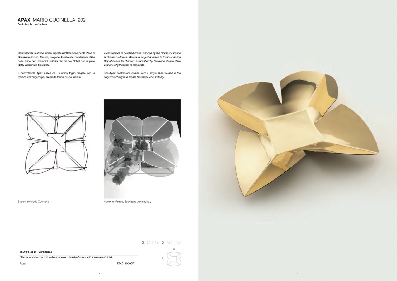 Centrotavola in ottone lucido, ispirato all’Abitazione per la Pace di