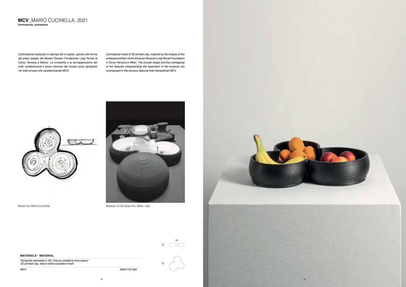 Terracotta stampata in 3D, finitura cristallina nera opaca •