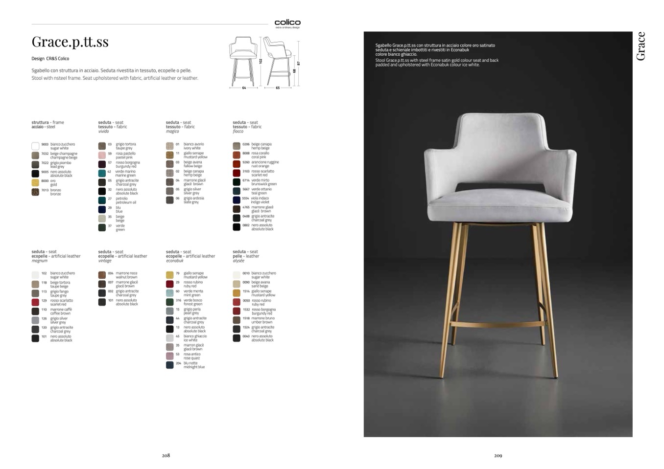 Sgabello Grace.p.tt.ss con struttura in acciaio colore oro satinato