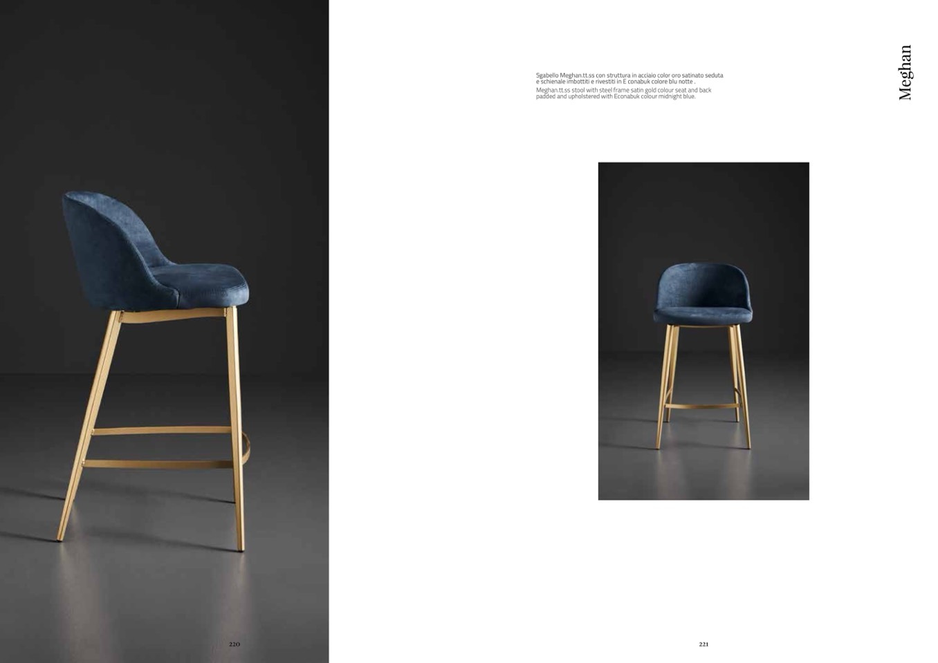 Sgabello Meghan.tt.ss con struttura in acciaio color oro satinato seduta
