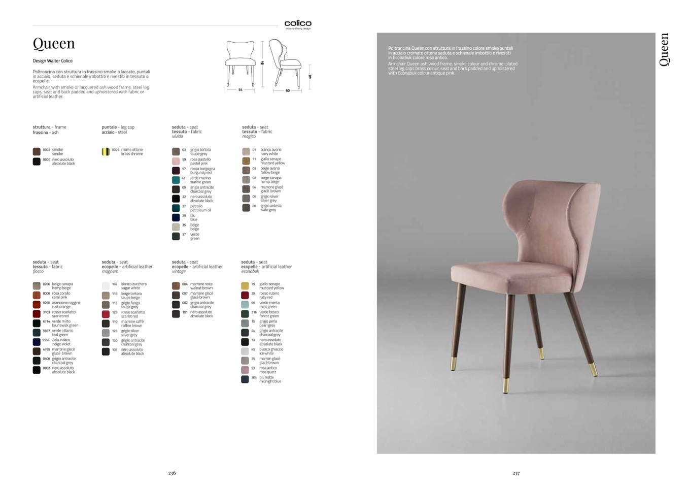 Poltroncina Queen con struttura in frassino colore smoke puntali