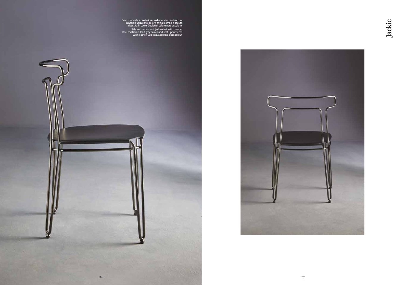 in acciaio verniciato, colore grigio piombo e seduta