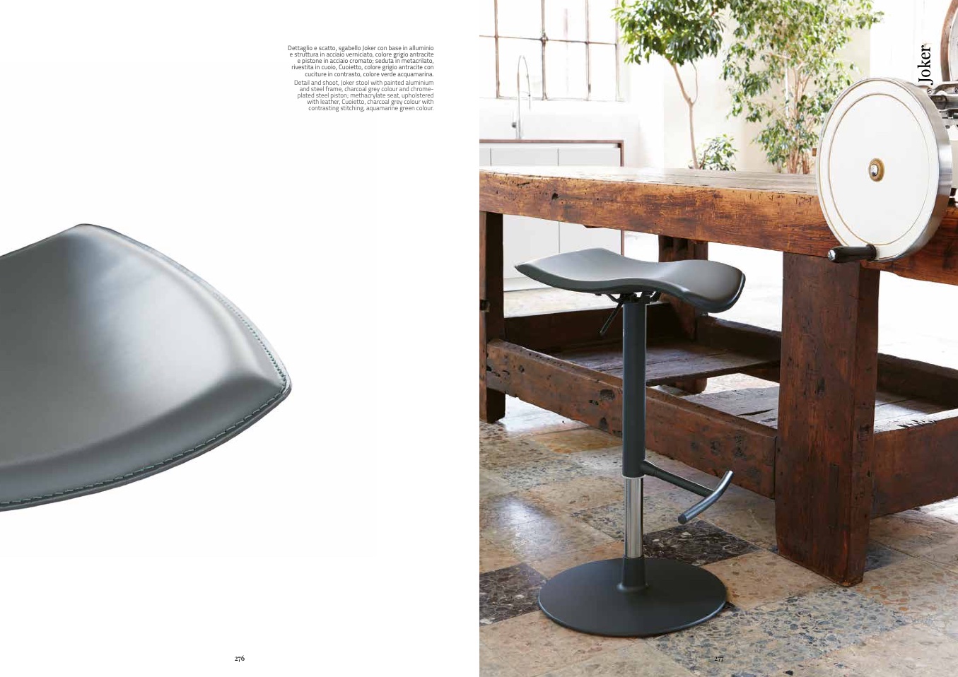 Dettaglio e scatto, sgabello Joker con base in alluminio