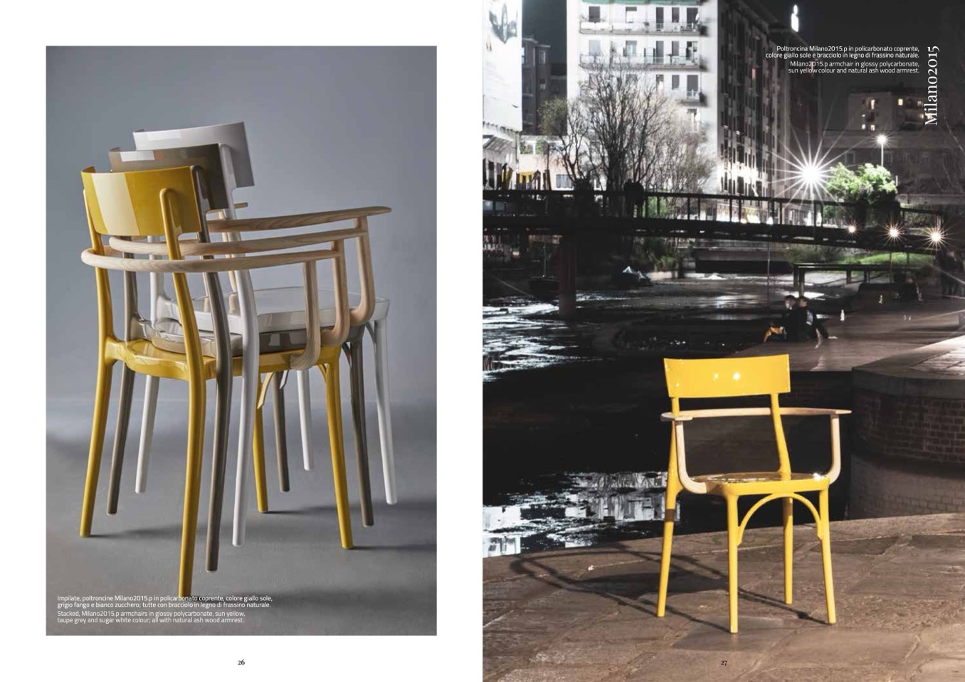 Impilate, poltroncine Milano2015.p in policarbonato coprente, colore giallo sole,