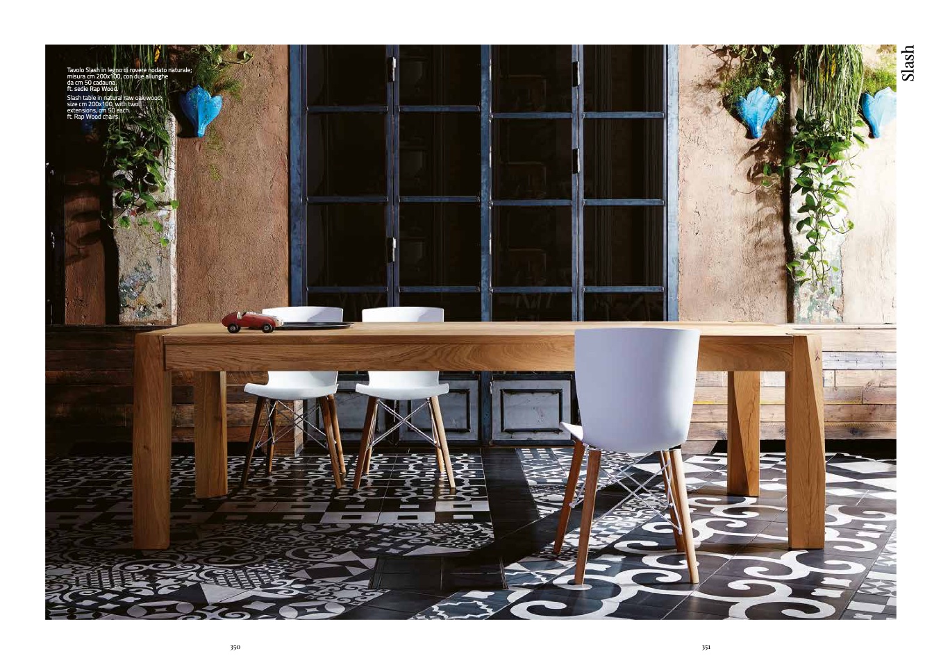 Tavolo Slash in legno di rovere nodato naturale;