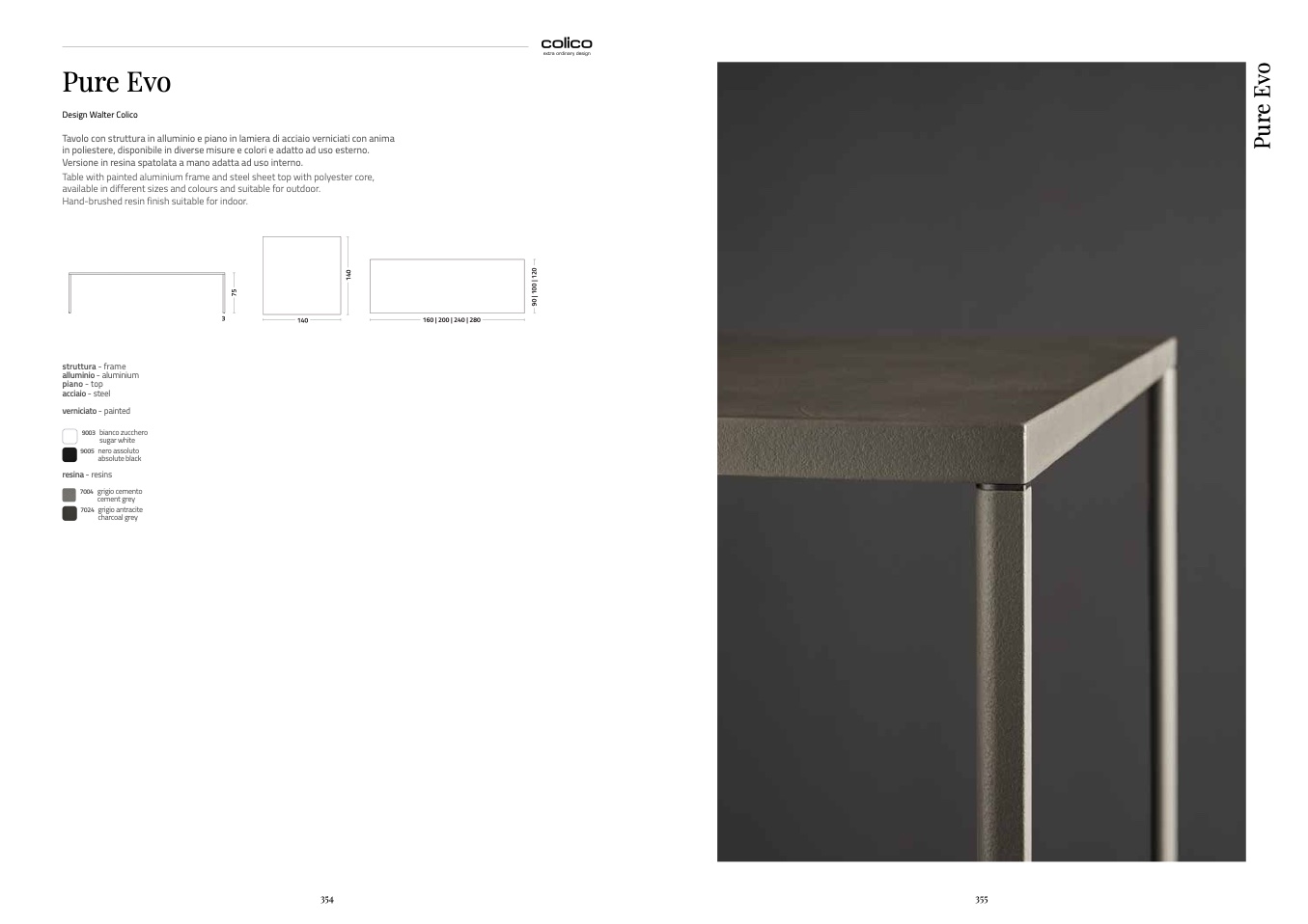 Tavolo con struttura in alluminio e piano in lamiera di acciaio verniciati con anima