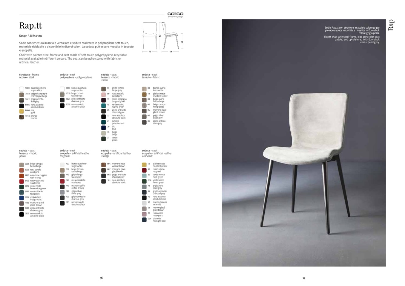 Rap.tt chair with painted steel frame, lead grey colour and