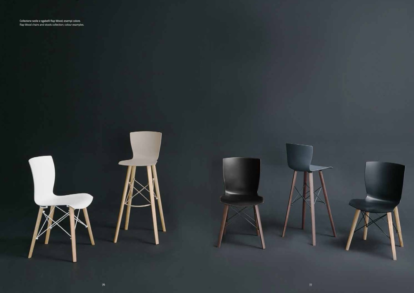 Collezione sedie e sgabelli Rap Wood; esempi colore.