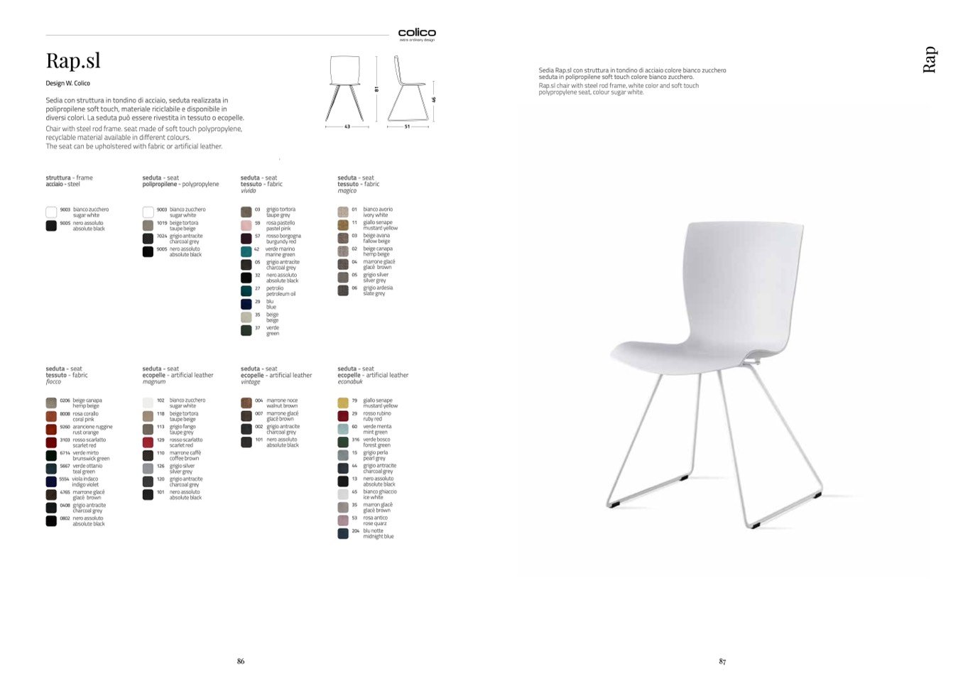 Rap.sl chair with steel rod frame, white color and soft touch