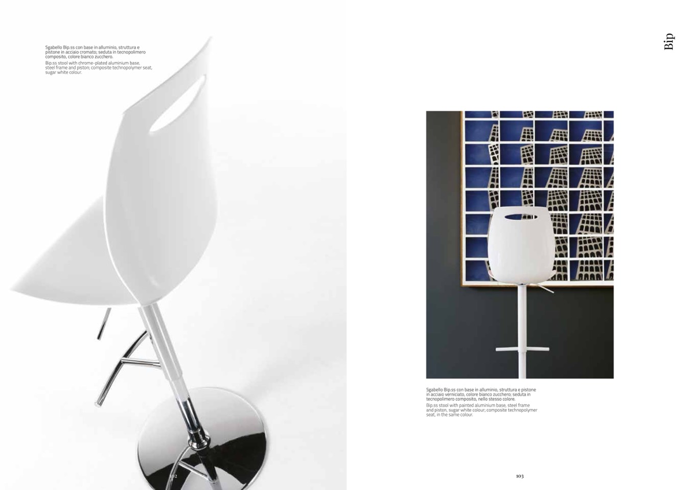 Bip.ss stool with chrome-plated aluminium base,