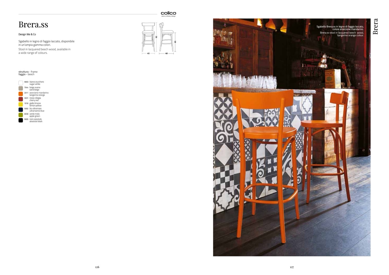 Sgabello Brera.ss in legno di faggio laccato,