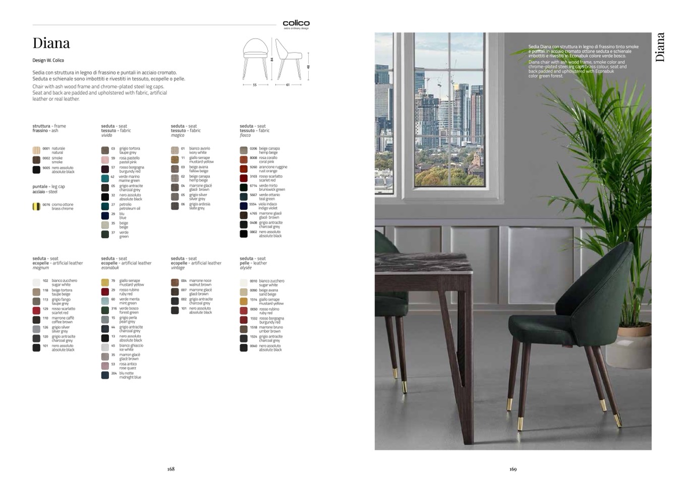 Sedia Diana con struttura in legno di frassino tinto smoke