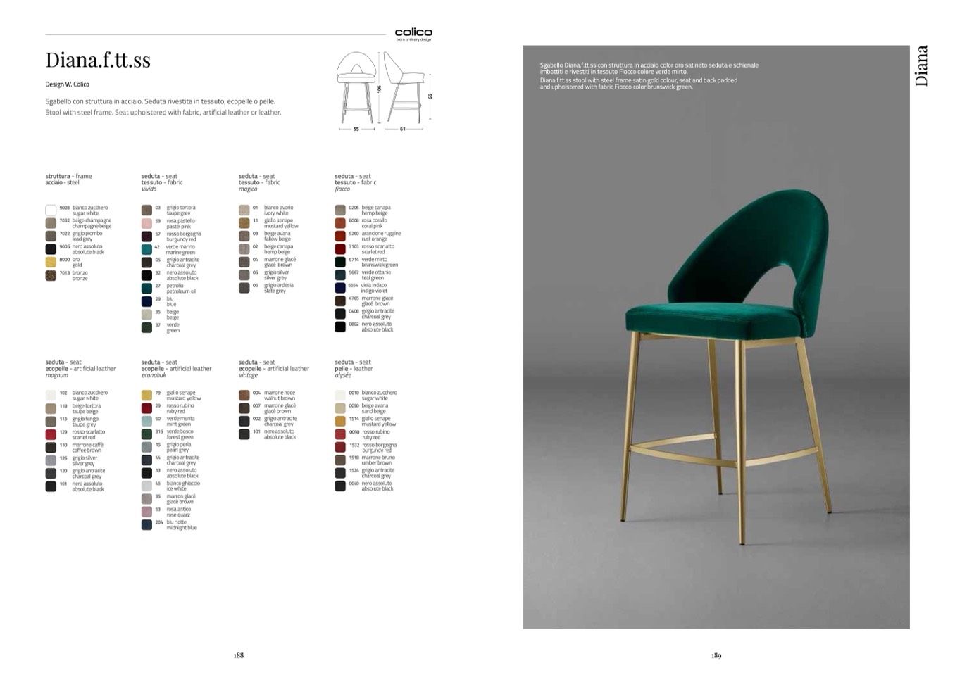 Sgabello Diana.f.tt.ss con struttura in acciaio color oro satinato seduta e schienale