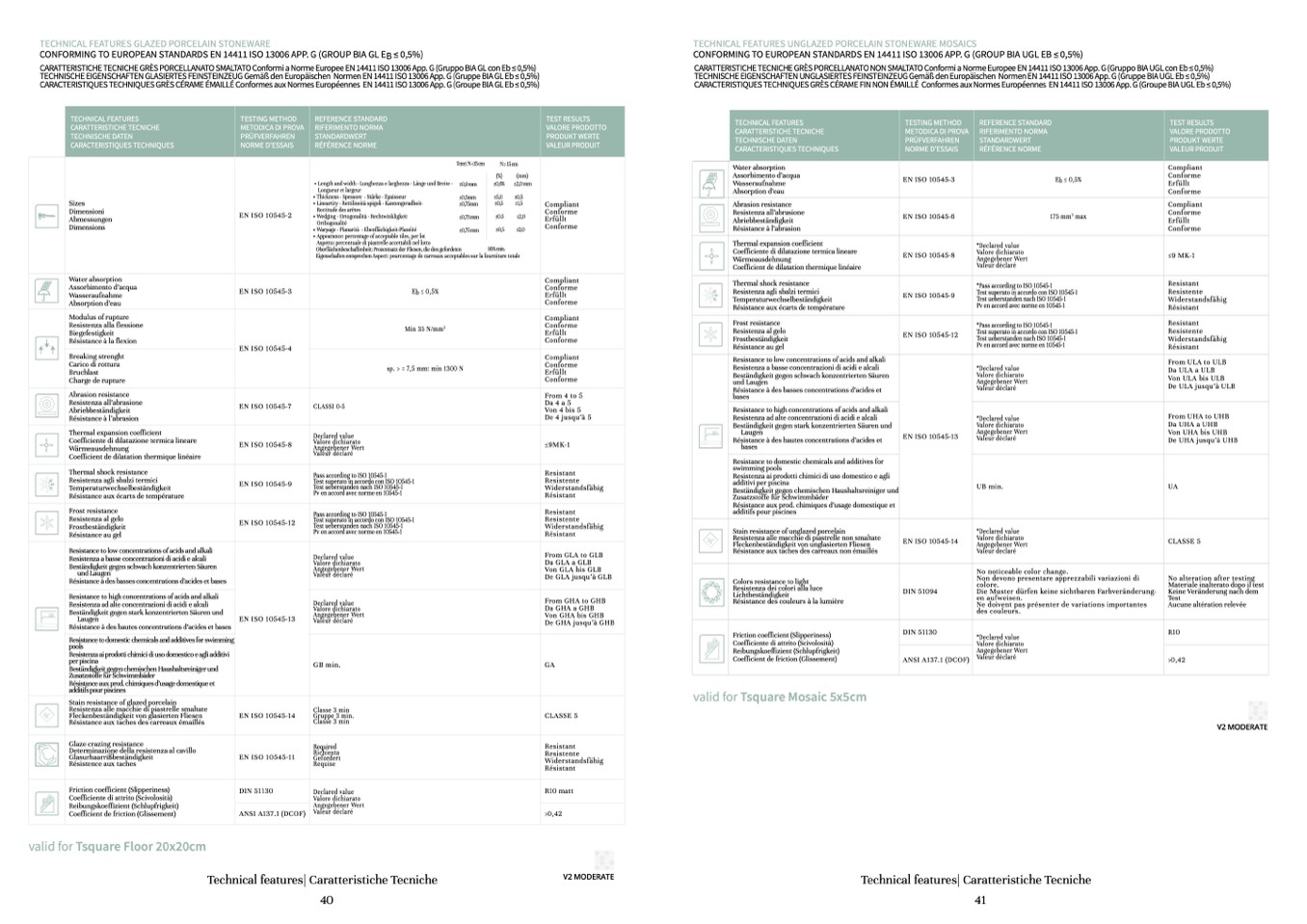 CARATTERISTICHE TECNICHE GRÈS PORCELLANATO NON SMALTATO Conformi a Norme Europee EN 14411 ISO 13006 App. G (Gruppo BIA UGL con Eb ≤ 0,5%)