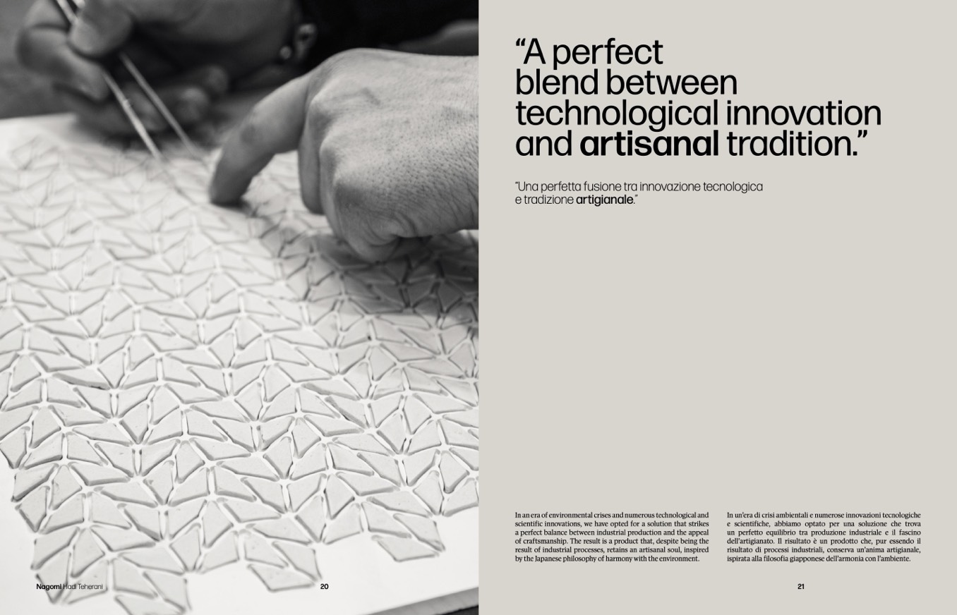 result of industrial processes, retains an artisanal soul, inspired