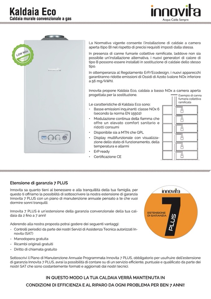 Innovita propone Kaldaia Eco, caldaia a basso NOx a camera aperta