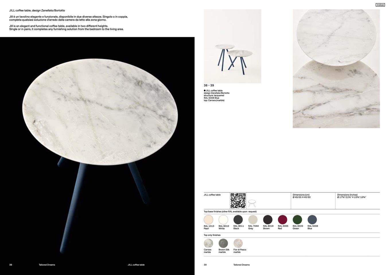 Jill è un tavolino elegante e funzionale, disponibile in due diverse altezze. Singolo o in coppia,