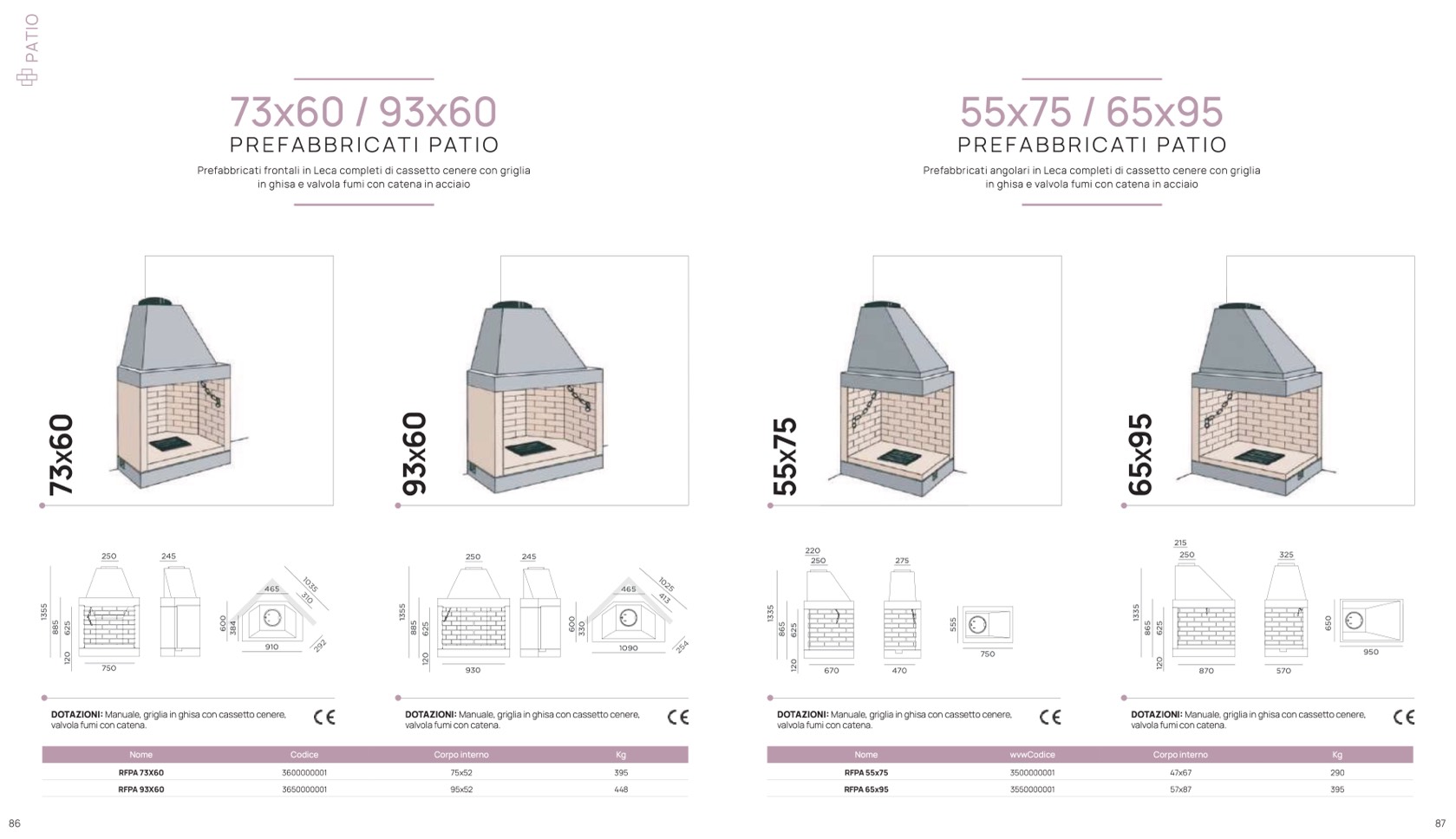 Prefabbricati frontali in Leca completi di cassetto cenere con griglia